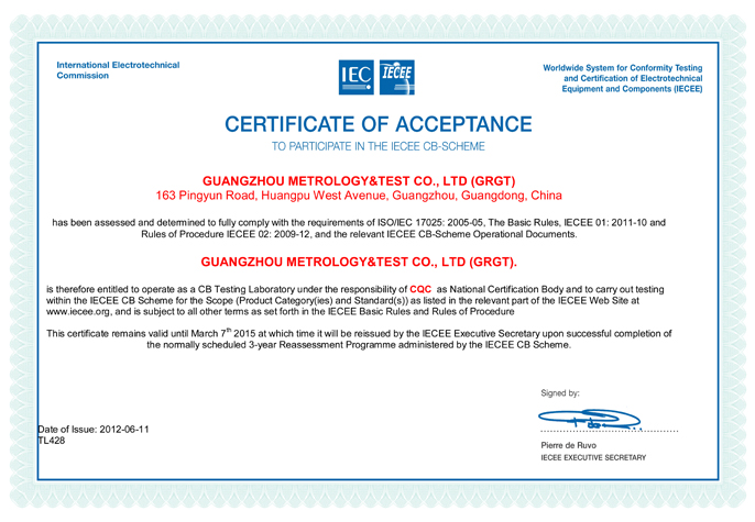 中國船級社產(chǎn)品檢測和試驗機構認可證書