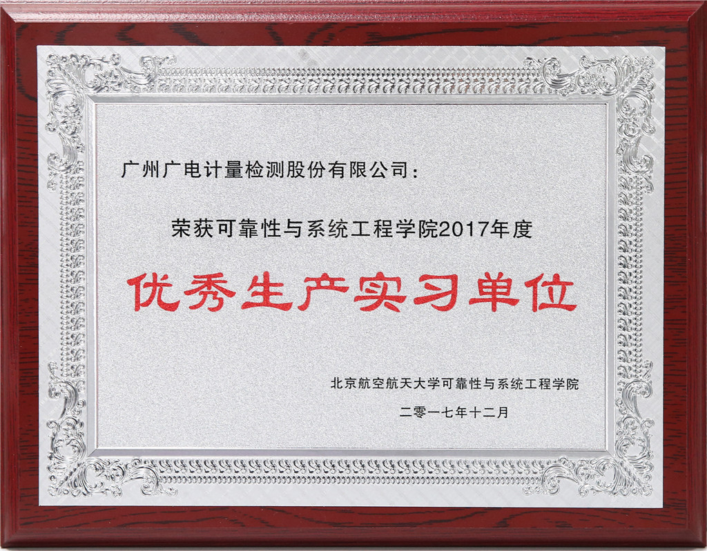 北京航天大學可靠性與系統(tǒng)工程學院2017年度優(yōu)秀生產(chǎn)實習單位
