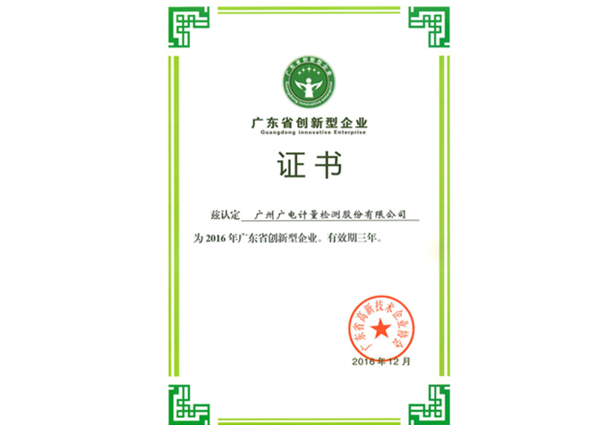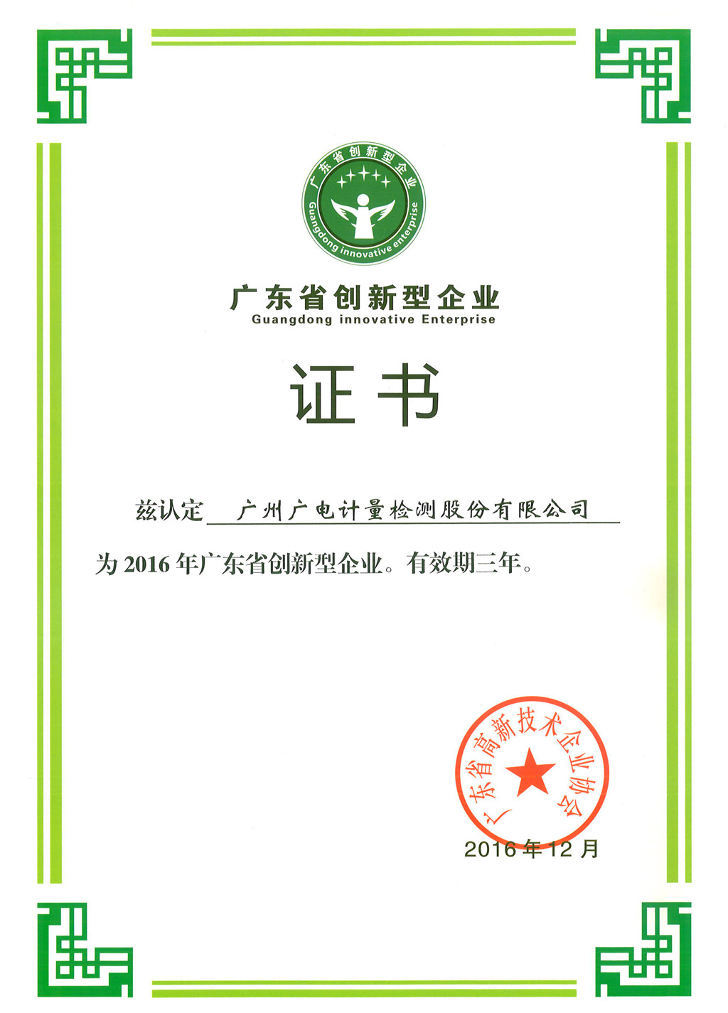 2016年廣東省創(chuàng)新型企業(yè)”資質(zhì)證書(shū)