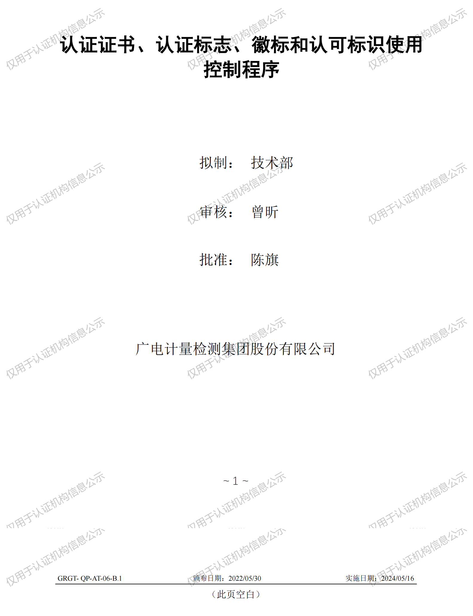 認證證書、認證標志、徽標和認可標識使用控制程序