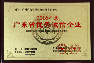 廣電計量榮獲“2016年度廣東省優秀誠信企業”稱號