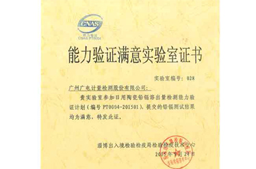 GRGT化學(xué)分析測試中心順利通過淄博出入境檢驗檢疫局檢驗檢疫技術(shù)中心關(guān)于“PT0004-201501 日用陶瓷鉛鎘溶出量檢測”能力驗證。
