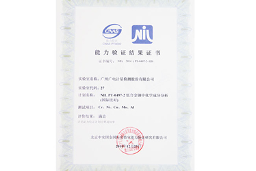 化學分析測試中心以優異成績通過北京中實國金國際實驗室能力驗證研究有限公司關于“NIL PT-0497-2 低合金鋼中化學成分分析(國際比對)”能力驗證。