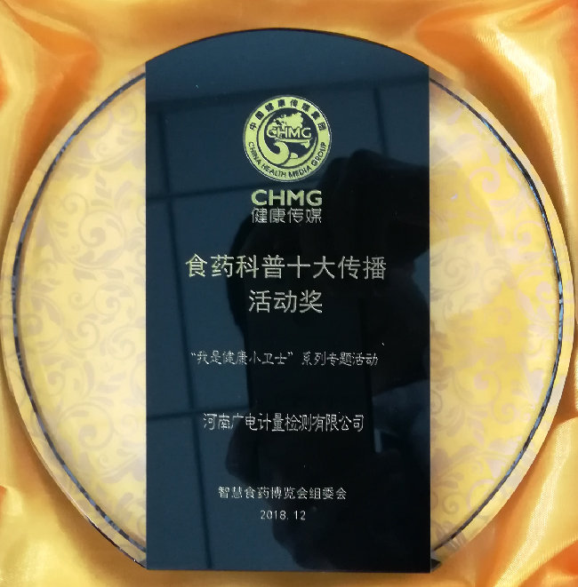 河南廣電計量榮獲全國食藥科普排行榜“十大傳播活動獎”