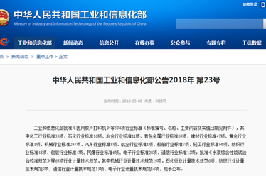 5月8日,國家工業和信息化部發布2018年第23號公告,批準了594項行業標準、63項行業計量技術規范,定于今年7月1日正式實施。由廣電計量技術研究院專家團隊編寫的兩項...