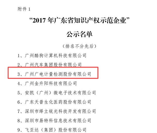 按照《廣東省知識(shí)產(chǎn)權(quán)示范企業(yè)和優(yōu)勢企業(yè)評定辦法》(粵知保協(xié)發(fā)字〔2017〕17號),經(jīng)企業(yè)自愿申請、各地市及順德區(qū)知識(shí)產(chǎn)權(quán)局擇優(yōu)推薦、專家評審并由“廣東省知識(shí)產(chǎn)權(quán)示范企業(yè)和優(yōu)勢企業(yè)評定工作指導(dǎo)委員會(huì)”合議,擬認(rèn)定“廣州廣電計(jì)量檢測股份有限公司”等20家企業(yè)為“2017年度廣東省知識(shí)產(chǎn)權(quán)示范企業(yè)”。