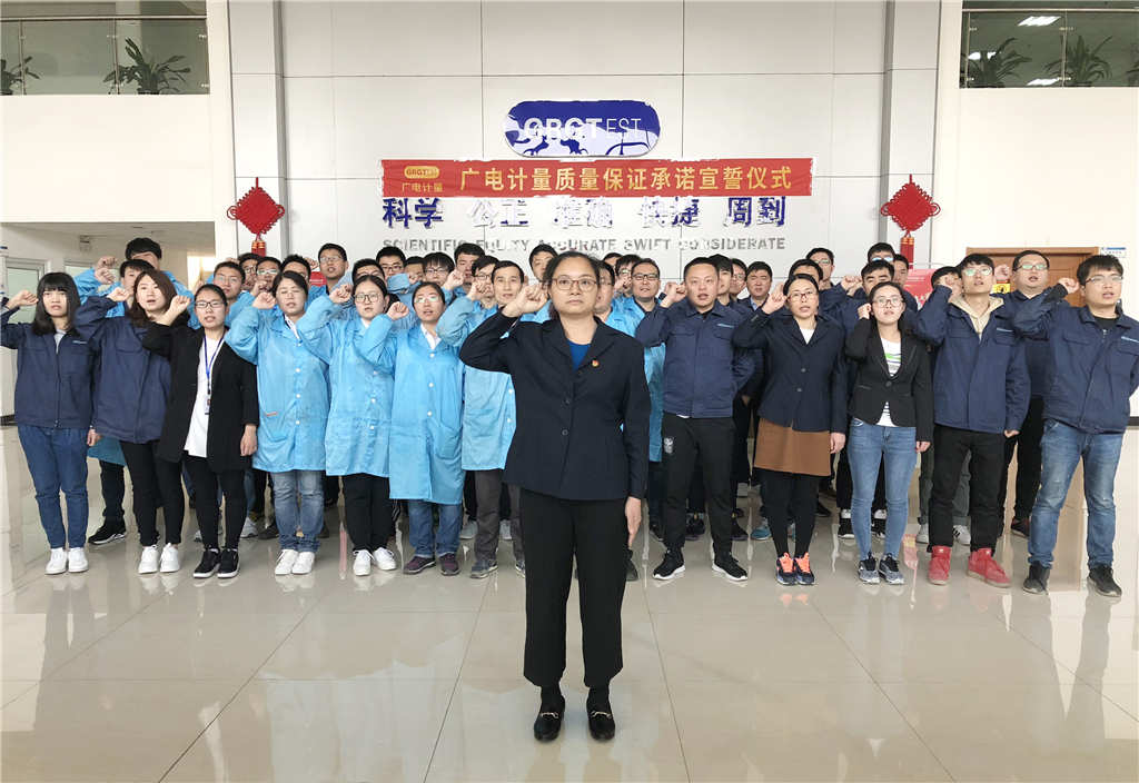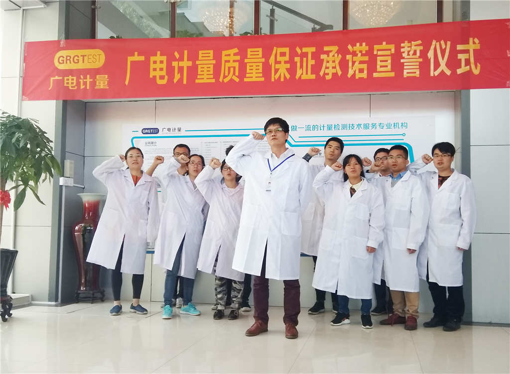 4月12日-13日,廣電計(jì)量全國(guó)20大檢測(cè)基地相繼舉辦技術(shù)人員質(zhì)量保證承諾宣誓儀式。廣州總部六大技術(shù)中心,北京、天津、鄭州、長(zhǎng)沙等全國(guó)檢測(cè)基地的千余名技術(shù)人員在領(lǐng)誓人帶領(lǐng)下高舉右手,緊握拳頭,向客戶(hù)、社會(huì)和自己作出鄭重承諾。整齊劃一的宣誓聲在現(xiàn)場(chǎng)回蕩,每一字每一句,都體現(xiàn)了廣電計(jì)量人堅(jiān)守質(zhì)量紅線,捍衛(wèi)檢測(cè)數(shù)據(jù)公正性的毅然決心!自此, 主題為“堅(jiān)守質(zhì)量底線 以質(zhì)量創(chuàng)品牌”的廣電計(jì)量2018年“質(zhì)量月”活動(dòng)在全國(guó)進(jìn)入高潮!