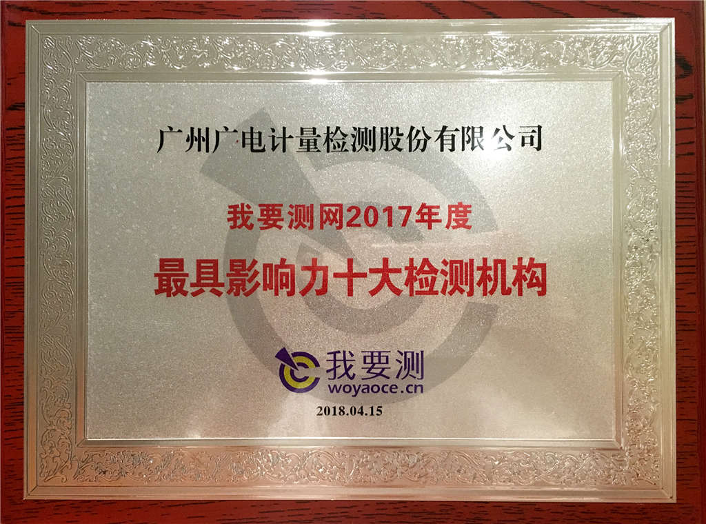 在論壇舉行的“儀器及檢測風云榜頒獎盛典”上,行業知名媒體我要測網依據專家評審、網絡投票等環節對多家計量檢測機構進行綜合評價,發布“2017最具影響力十大檢測機構”,廣電計量憑借專業優質的技術、高效創新的服務再次入選。據悉,這已是我要測網連續五屆舉辦“最具影響力十大檢測機構”評選活動,旨在推動中國第三方檢測行業健康、規范、有序、快速的發展,表彰那些通過互聯網積極探索和推廣服務,并在專業能力和服務質量表現突出的企業機構。
