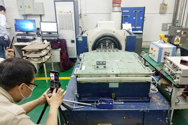 為保證遠程目擊試驗真實、可靠,審查組工程代表首先向申請人和廣電計量技術負責人宣貫了審查組的要求,明確了遠程審查的開展前提和實施原則,并由委任制造檢查代表在廣州試驗現場完成了試驗前制造檢查。本次遠程目擊試驗采取固定鏡頭和移動鏡頭相配合的方式,保證試驗現場實況的360°全覆蓋。試驗條件準備就緒后,審查組、申請人和廣電計量技術人員按照試驗大綱,共同開展了試驗目擊檢查,確認測試數據;并由審查組根據目擊檢查情況,向申請人反饋檢查結果,圓滿完成了檢查工作。