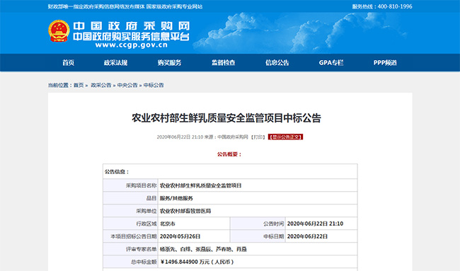 2020年6月,沈陽(yáng)廣電計(jì)量中標(biāo)農(nóng)業(yè)農(nóng)村部生鮮乳質(zhì)量安全監(jiān)管項(xiàng)目,將配合農(nóng)業(yè)農(nóng)村部實(shí)施生鮮乳質(zhì)量安全監(jiān)測(cè)計(jì)劃,協(xié)助政府全面掌握生鮮乳質(zhì)量狀況,加強(qiáng)乳品質(zhì)量安全工作。這是繼2019年承接農(nóng)業(yè)農(nóng)村部生鮮乳質(zhì)量安全監(jiān)管項(xiàng)目后,沈陽(yáng)廣電計(jì)量再次中標(biāo)該項(xiàng)目。