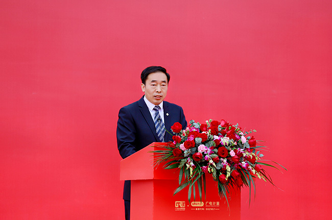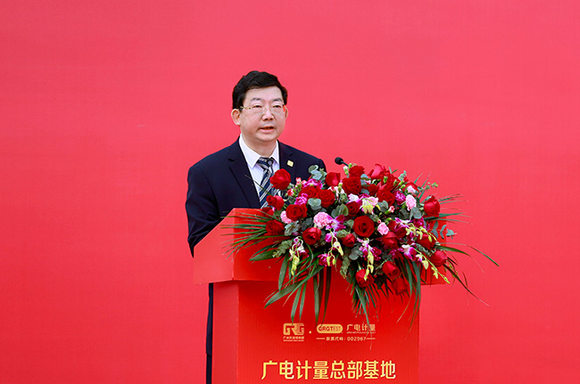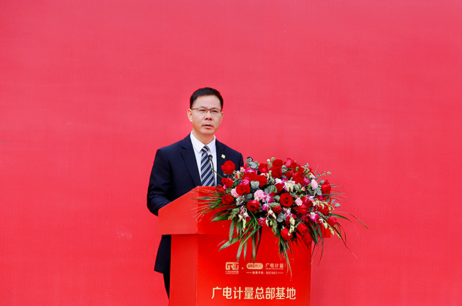 楊海洲發表致辭,對廣電計量總部基地動工表示熱烈祝賀。他在致辭中深情回顧:廣州無線電集團成立于 1995 年 2 月 28 日,歷史可追溯至 1956 年,距今已有 65 年的歷史。上世紀九十年代初期,企業曾瀕臨破產,而后于 1992 年底易帥重整,在集團首任董事長李承志老先生的帶領下,重新崛起,以市場化改革走出了一條競爭型國有企業個體化生存發展的道路。秉承無線電集團的發展基因,廣電計量始終以技術之力積極投身質量強國建設,同時經營業績一直保持高速增長,為無線電集團的規模發展做出了不可或缺的貢獻。楊海洲表示,在番禺區良好的營商環境和政府單位的關懷、支持下,廣電計量在番禺建設總部基地,將能更好地以技術創新為驅動,加快現代化產業體系建設,支撐粵港澳大灣區的創新發展,為建設質量強國貢獻力量。今天是其第九次參加無線電集團及其旗下子公司產業園的動工儀式,值得一書的是,其參加過的無線電集團的奠基項目,施工過程都順風順水,投入使用全都興旺發達,今天,把這些吉祥和幸運注入廣電計量,希望廣電計量在這個新的起點,堅持體制、機制創新和技術創新,獲得更大的、新的騰飛!相信廣電計量團隊定能準確把握好“十四五”時期的發展大勢,不斷創新突破,引領行業發展,為廣州乃至全國樹立計量檢測行業的新標桿,實現產業報國、實業強國的抱負和擔當!