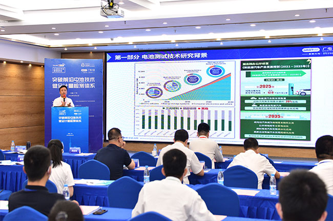 廣電計量副總經理兼技術研究院院長明志茂受邀出席并致辭。他表示,大灣區正積極發展和布局新能源汽車產業,希望能以本次論壇為契機,進一步整合動力電池領域“檢、學、研、用”各方的優勢資源,共同攻克新體系電池的技術難題,建立健全的新能源汽車計量檢測體系,推動大灣區加快建設世界級汽車產業集群。
