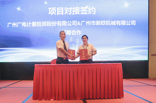 明志茂(左)代表廣電計量與新歐機(jī)械簽署戰(zhàn)略合作協(xié)議