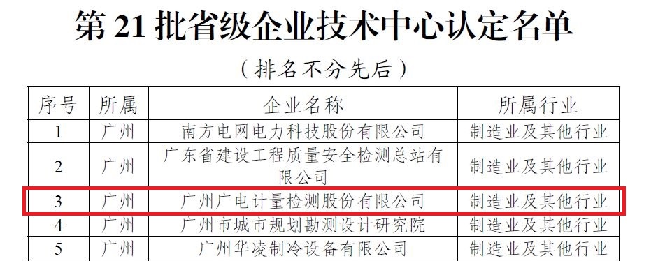 近日,廣東省工業和信息化廳公布第21批省級企業技術中心認定名單,廣電計量順利通過省級企業技術中心認定,是本批次僅有的4家通過認定的檢驗檢測類企業之一。