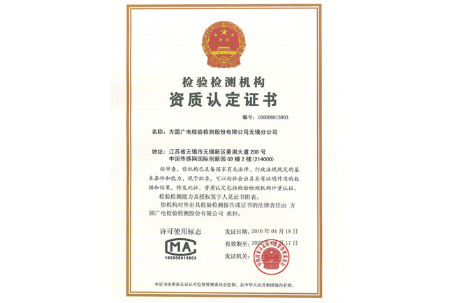4月,廣電計量合資子公司,即方圓廣電檢驗檢測股份有限公司(簡稱:方廣檢測)天津、無錫實驗室順利通過了由國家認監委派出的專家組的CMA現場評審。此次評審批準產品類別包括信息技術類設備、音視頻類設備、電信終端、電動工具、電焊機、小功率電動機、電器附件等。方廣檢測將順應市場的需求不斷增強技術實力,拓展華北和華東市場,更好地為企業提供優質的檢測服務。