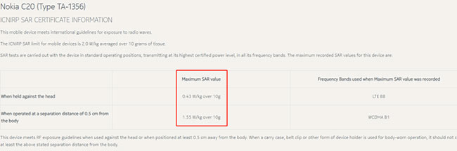 信息來(lái)源:https://www.nokia.com/phones/en_int/sar