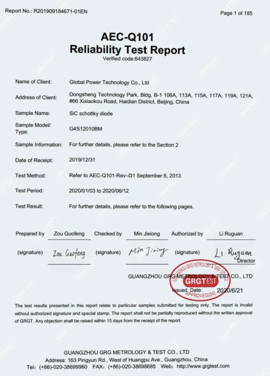 元器件廠家需要進軍車用領域必須通過車規標準驗證。早在2019年,廣電計量就與泰科天潤展開了關于車規標準驗證的合作。在首次合作中,廣電計量為泰科天潤自研的1200V碳化硅肖特基二極管產品提供了AEC-Q101車規驗證。第三代半導體器件作為行業新興產品,在國內幾乎無相關車規驗證先例可循。
