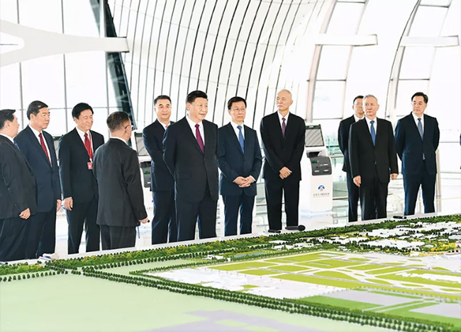 2019年9月25日上午,北京大興國(guó)際機(jī)場(chǎng)投運(yùn)儀式在北京舉行。中共中央總書記、國(guó)家主席、中央軍委主席習(xí)近平出席儀式,宣布機(jī)場(chǎng)正式投運(yùn)并巡覽航站樓。這是習(xí)近平在綜合交通中心聽取機(jī)場(chǎng)綜合交通體系建設(shè)情況介紹。 新華社記者 謝環(huán)馳/攝