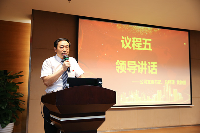 會上,黃敦鵬代表公司黨委班子向全體黨員致以節日的問候,向受表彰的先進集體和個人以及新發展的15名中共預備黨員表示熱烈地祝賀。黃敦鵬強調,本次大會既是一次慶祝黨的99歲生日的紀念會,也是凝聚公司發展力量的動員會并對全體黨員提出了三點期望:一是銘記黨的奮斗歷程,弘揚艱苦奮斗精神,彰顯特殊時期的使命擔當;二是學習追趕先進典型,爭當服務大局先鋒,彰顯黨組織和黨員的先進性;三是重視思想政治教育,凝聚新的發展力量,彰顯“支部建在連上”的政治優勢。黃敦鵬號召全體黨員要對照先進典型,比學趕超向前,為全力沖刺廣電計量“十三五”目標、開啟“十四五”規劃、實現新的跨越式發展作出新的更大的貢獻!