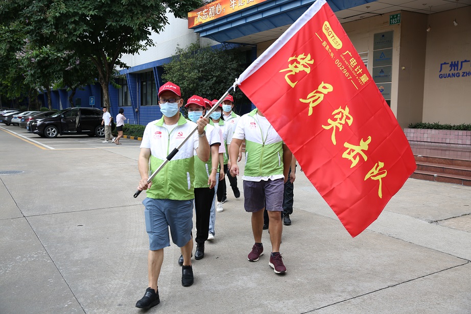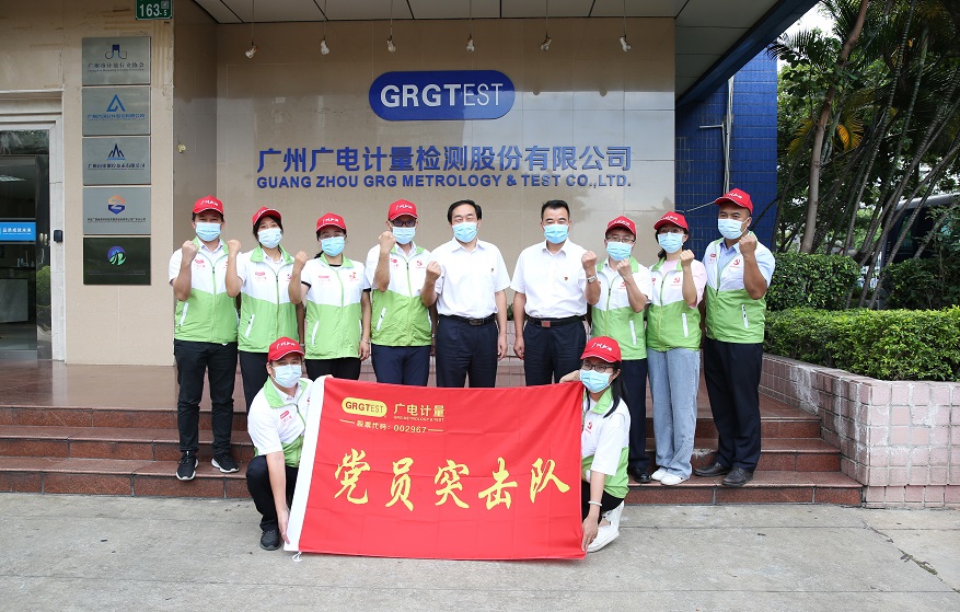 (照片組圖:6月10日,廣電計(jì)量黨委書記、總經(jīng)理黃敦鵬,黨委副書記白云對(duì)黨員突擊隊(duì)志愿者進(jìn)行動(dòng)員講話,鼓勵(lì)志愿者努力為廣州疫情防控工作做出更大貢獻(xiàn),并叮囑大家做好自身防護(hù)。志愿者們扛著黨旗,以飽滿的熱情投入支援荔灣全員核酸檢測(cè)的工作中。)