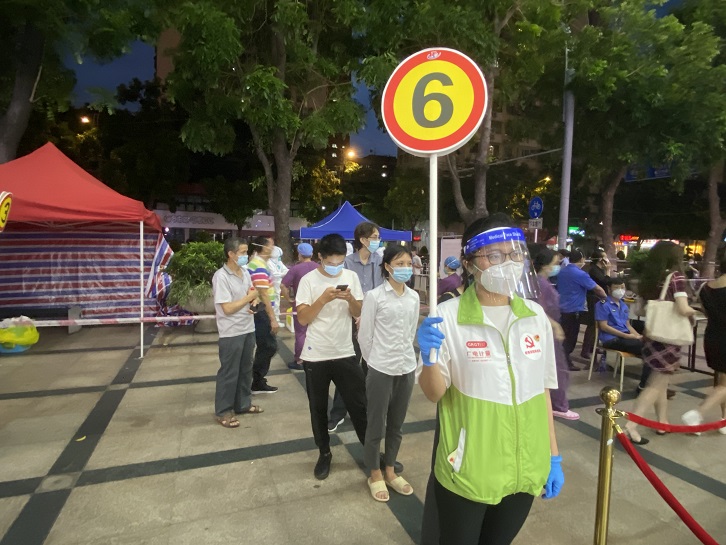 學(xué)史力行辦實(shí)事,爭(zhēng)當(dāng)先鋒齊抗疫!連日來,廣州各區(qū)啟動(dòng)大規(guī)模核酸檢測(cè),正面迎擊疫情。關(guān)鍵時(shí)刻,廣電計(jì)量黨員從黨史學(xué)習(xí)教育中汲取力量,投入到 “我為群眾辦實(shí)事”實(shí)踐活動(dòng),勇當(dāng)先鋒作表率,踴躍投身廣州大大小小的社區(qū)街道,支援抗疫一線,參與社區(qū)入戶排查、核酸檢驗(yàn)點(diǎn)值守、受檢人員信息登記、防疫知識(shí)宣傳等社區(qū)志愿工作,展現(xiàn)廣電計(jì)量黨員的先鋒力量,讓黨旗在抗疫一線高高飄揚(yáng)。
