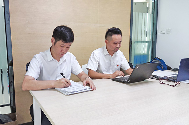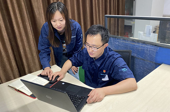黃東同志(右)與同事協(xié)同推進(jìn)項目