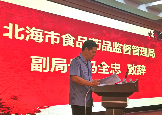 7月13日,2017年北海市食品安全宣傳周食品安全大講堂活動在美麗的北海市隆重舉辦,來自北海市食藥監局、農業局、質量技術監督局、食品藥品檢驗所、食品安全協會等單位的領導及食藥監局干部職工、食品行業代表逾600余人共同參與活動,北海市食藥監局馮全忠副局長參會并致辭。