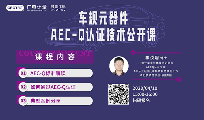 4月10日(本周五15:00-16:00),廣電計量李汝冠博士為您帶來車規(guī)元器件AEC-Q認證技術(shù)公開課,助您通過AEC-Q認證,歡迎各位朋友掃碼報名!